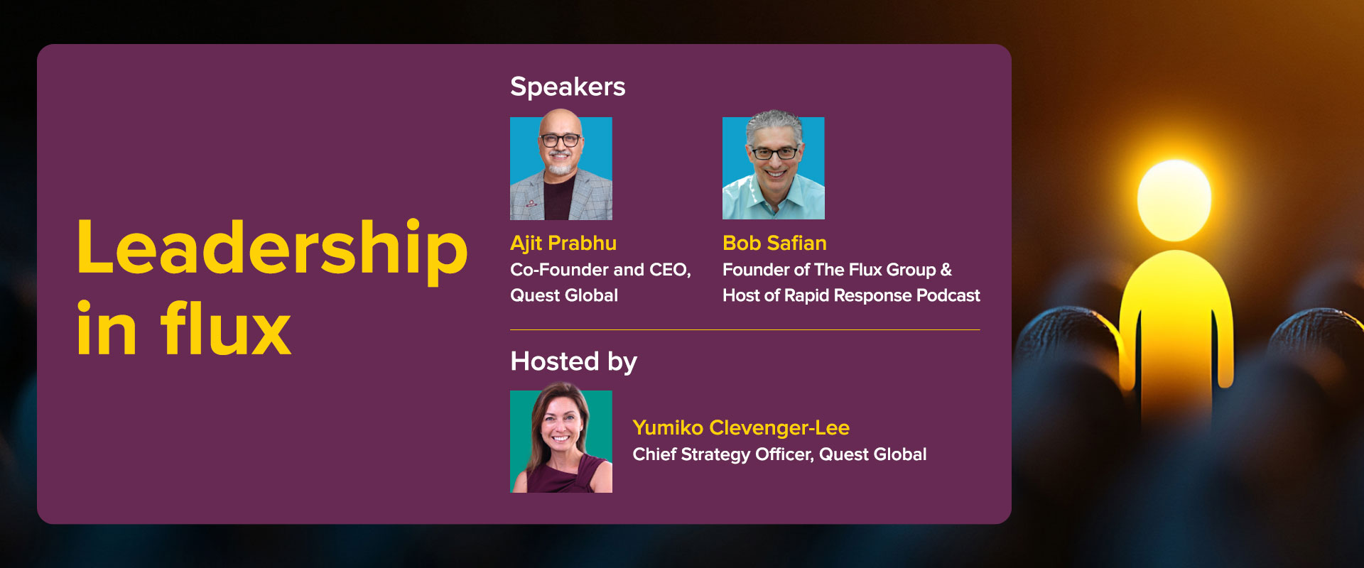 This four-part series brings together Ajit Prabhu, Co-Founder and CEO of Quest Global, and Bob Safian, Founder of The Flux Group and host of the Rapid Response podcast, in a conversation moderated by Quest Global’s Chief Strategy Officer, Yumiko Clevenger Lee.